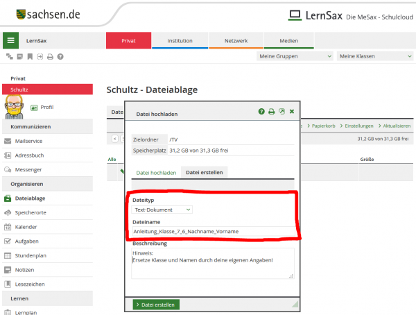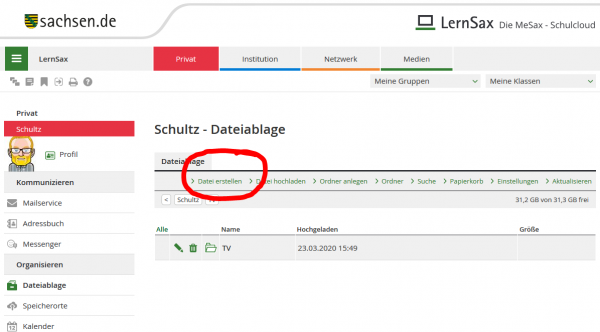 1. Erstelle eine Datei in deiner privaten Dateiablage.