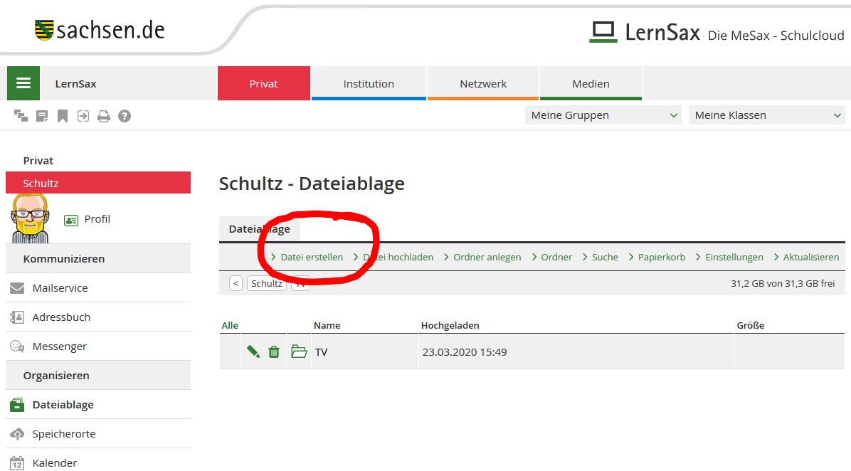 1. Erstelle eine Datei in deiner privaten Dateiablage.