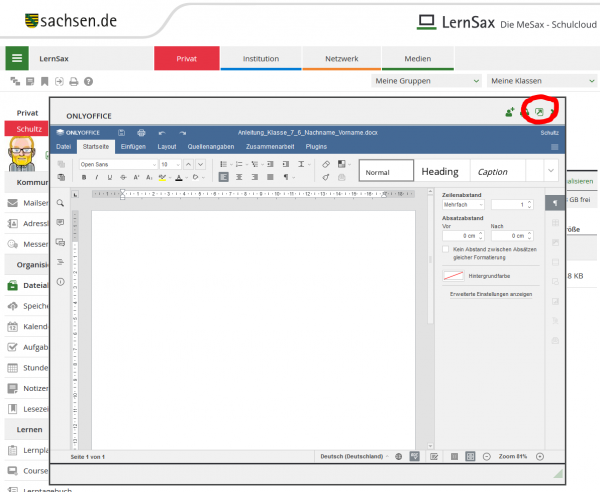 4. Öffne OnlyOffice in einem separaten Browserfesnter, damit du es nicht aus Versehen schließt und LernSax nicht blockiert wird.